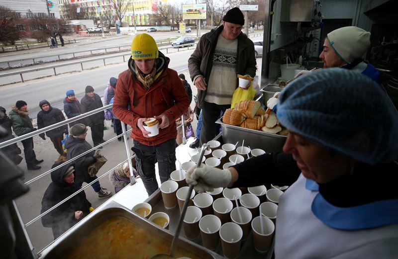 Afet ve Acil Durum Yönetimi Başkanlığı (AFAD), mart başında yoğun saldırılara maruz kalmasına rağmen Rus ordusunun ele geçiremediği ancak ağır yıkımların meydana geldiği Çernigiv'de ihtiyaç sahiplerine, mobil mutfak tırı sayesinde her gün sıcak yemek dağıtıyor. Belarus sınırına yakın, havalar soğuduğu için nehir ve göllerin buz tuttuğu, özelikle sivil altyapıların vurulduğu Çernigiv'de yaşayanlar, şehir merkezindeki AFAD mobil mutfak tırından sıcak yemekleri almak için kuyruk oluşturuyor.