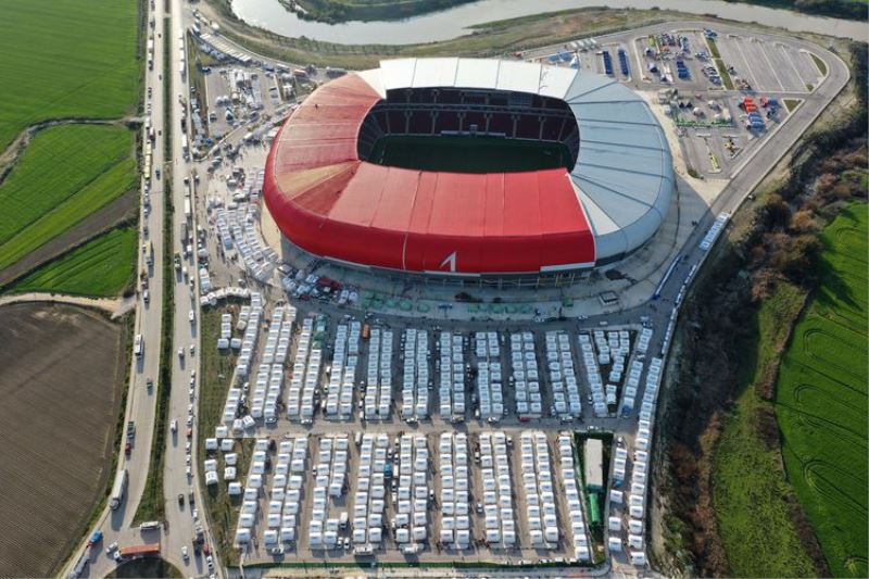 Yeni Hatay Stadyumu çevresinde kurulan çadır kent havadan dronla görüntülendi.