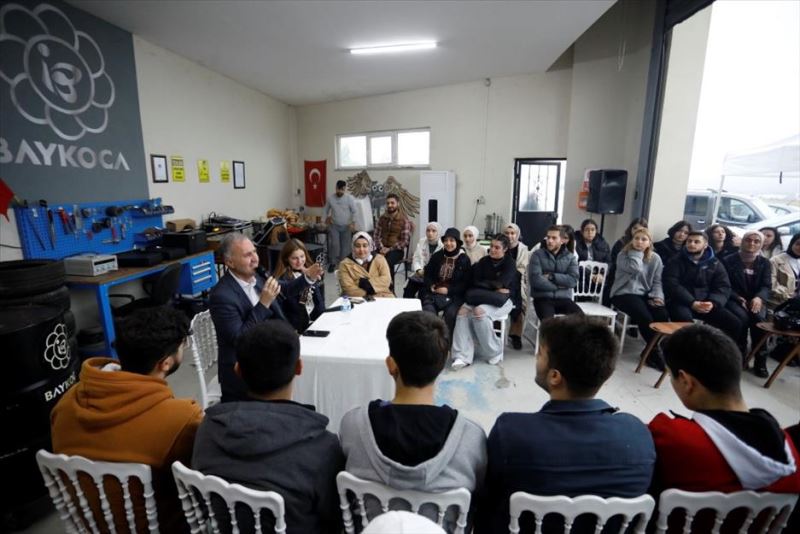 Hangar içerisinde yapılan buluşmada İnegöl’e dair anlatımlar yapan Başkan Taban, “Burada olduğunuz için her birinize teşekkür ediyorum. İnegöl güzel bir şehir. Fırsatların olduğu bir şehir. Sizlerin de burada önünüzde çok güzel günleriniz olduğunu düşünüyorum. Gençsiniz, hedefleriniz var ve bu hedeflere ulaşabilmek için fırsatlarınız var. Dolayısıyla ben bunların her birini başaracağınıza canı gönülden inanıyorum. Pek çok vilayetten daha iyi ticaret yapılan bir şehir burası. İşsizliğin eksi derecelerde olduğu bir şehir. İnegöl’ün en önemli yönü de içerisindeki insan gücü. 81 vilayetin tamamından insan yaşıyor burada. Her gelen de bu şehre bir değer katmış. Atölye kurmuş, üretim yapmış, çalışmış, tesis kurmuş… Bir şekilde değer üretmiş. Burada fırsatlar var, imkanlar var. Bu fırsatlar da hiç bitmeyecek, hep var olacak. Ancak fırsatlar sadece onu görebilenler için var” dedi.