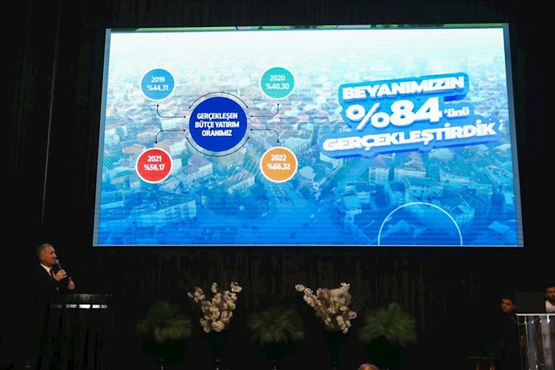 Her hizmetin bir hikayesi olduğuna da dikkat çeken Başkan Taban, “Burada sizlere sunacağımız hizmetlerimizin her birinin içerisinde kendine has hikayeler var. Çok ciddi emekler var. Milletvekilimiz ve İlçe Başkanımızdan her kademedeki teşkilat mensubumuza kadar dokunuşlar var. Zaman zaman projelerimizle ilgili pek çok kanaatinizi bizlere ilettiniz. El birliği ile dönemimiz başında yayınladığımız beyannamemizin yüzde 84’ünü tamamlamış olduk” diye konuştu.