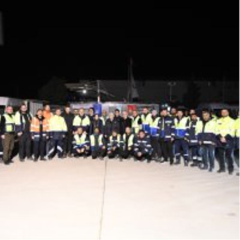 Usta, koordinasyon merkezinden ayrılmadan önce Büyükşehir’in saha ekibiyle hatıra fotoğrafı da çektirdi.