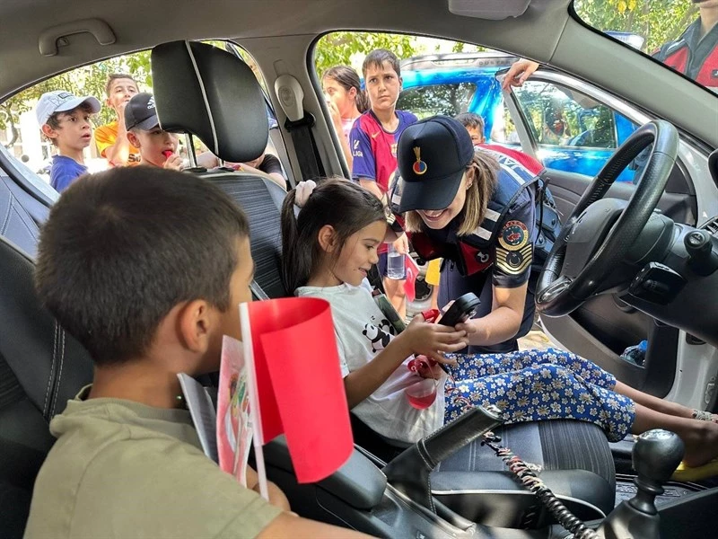 Aydın İl Jandarma Komutanlığı Aile İçi Şiddetle Mücadele ve Çocuk Kısım Amirliği, Çevre, Doğa ve Hayvanları Koruma Tim Komutanlığı ve Çine İlçe Jandarma Komutanlığı personelleri yaz tatilini Kahraman Mahallesi’nde geçiren çocuklara sürpriz yaptı. Ekipler, ’Jandarma ile Bir Gün’ faaliyeti kapsamında ’suçtan korunma ve kişisel güvenlik, çevre, doğa ve hayvan bilincinin oluşturulması ve trafik’ konularında miniklere bilgilendirmelerde bulundu. Jandarma hakkında tanıtıcı bilgiler veren ekipler, çocuklarla çeşitli oyunlar oynanarak jandarma boyama kitabı ve Türk bayrağımız hediye etti.