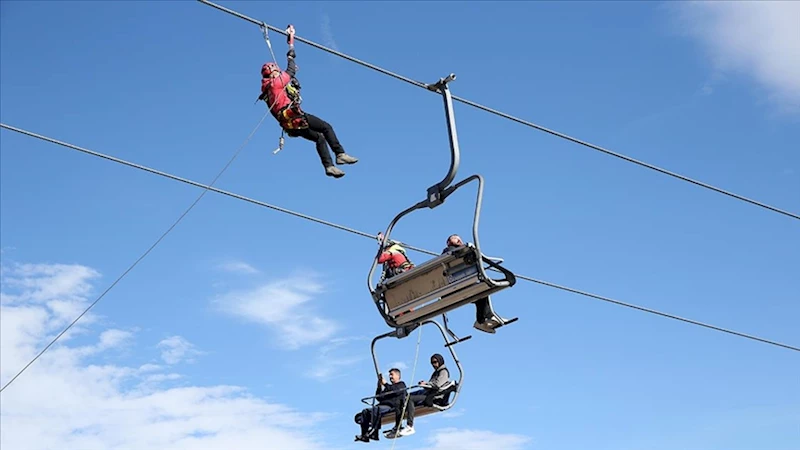Senaryo gereği, tesislerde meydana gelen arızadan kaynaklı, 2 bin 400 metre rakımdaki telesiyejde mahsur kalan 6 kişi, ekipler tarafından halat yardımıyla indirildi.