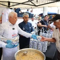 BURSA - Bursa Büyükşehir Belediyesi, Muharrem ayı dolayısıyla kentin farklı noktalarında vatandaşlara aşure ikramında bulunuyor. Gürsu ilçesinde bulunan Kapalı Pazar Yeri’nde Bursalılara aşure ikram eden Başkan Mustafa Bozbey, vatandaşların Muharrem ayını tebrik etti.