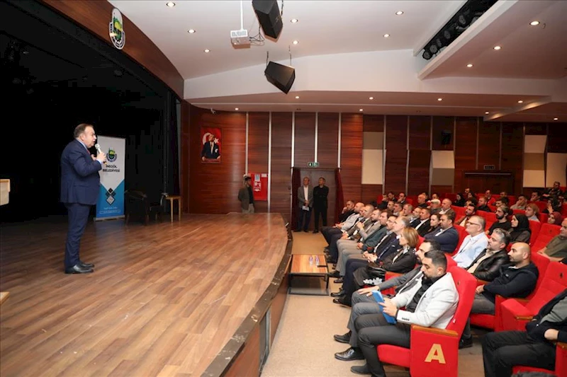 Seminer sonunda Belediye Başkanı Alper Taban da sahneye çıkarak kısa bir selamlama konuşması yaptı. Başkan Taban, “Kıymetli hocamız geçmiş tecrübesi ve bakış açısıyla yaşananları bizlere tüm çıplaklığıyla anlattı. Ben de çok dikkat çekici buldum. Aslında meseleler göründüklerinin çok daha ötesinde meseleler. Bizler de hocamızın anlatımlarıyla aydınlandık. Cihat Yaycı hocamız ve siz kıymetli vatandaşlarımıza teşekkür ediyorum” dedi. Konuşma sonrası Başkan Taban, Cihat Yaycı’ya gecenin anısına hediye takdimi gerçekleştirdi.
