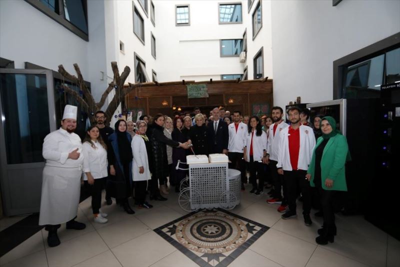 Konuşma sonrası öğretmenlerle birlikte günün anısına pasta kesimi de yapılırken, Başkan Taban öğretmenlere hediye takdiminde de bulundu.