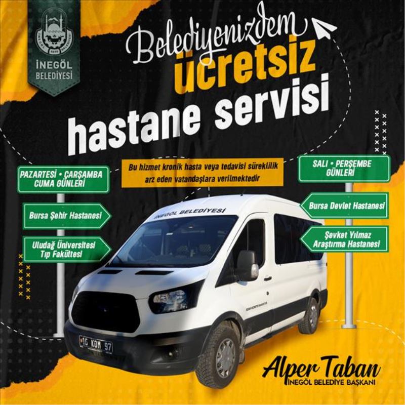 Pandemi sürecinde vatandaşların sağlık hizmetlerine daha kolay ve sorunsuz erişimi için İnegöl Belediyesi tarafından haftanın 3 günü Bursa Şehir Hastanesi ve Uludağ Üniversitesi Tıp Fakültesi Hastanesine ücretsiz servis hizmeti sunulmaya başlamıştı. Bu uygulama, vatandaşlardan gören ilgi üzerine pandemi sonrası da devam ediyor. Halen devam eden uygulamanın geliştirilerek devam edeceği açıklandı. Buna göre; Pazartesi, Çarşamba ve Cuma günleri Bursa Şehir Hastanesi ile Uludağ Üniversitesi Tıp Fakültesi Hastanesine yapılan servislere ek olarak Salı ve Perşembe günleri de Şevket Yılmaz Araştırma Hastanesi ile Bursa Devlet Hastanesine ücretsiz servis hizmeti sunulacak.