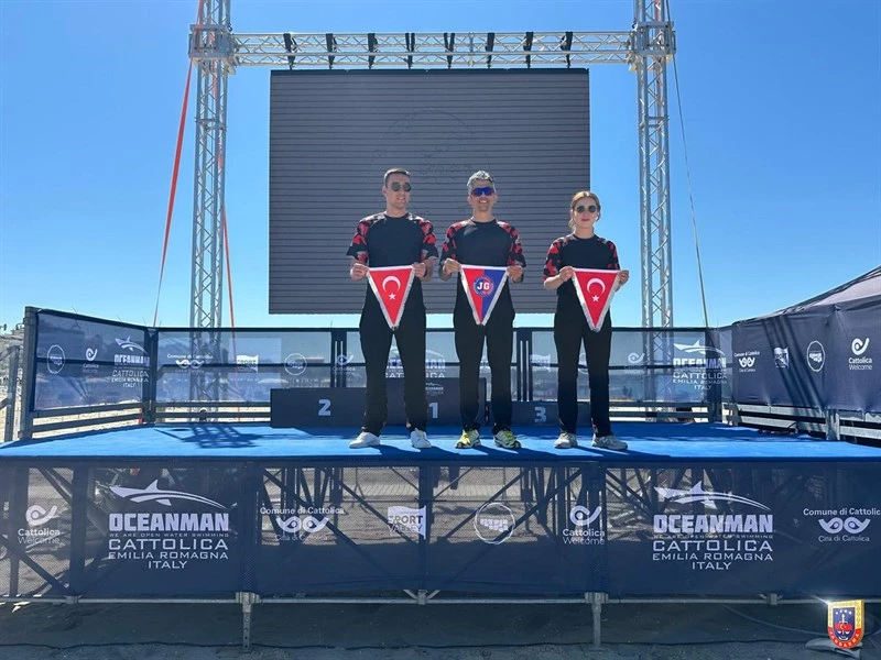İtalya’da düzenlenen, 52 ülkeden toplam 499 sporcunun katıldığı Uluslararası Oceanman Cattolica Şampiyonalarına katılan Jandarma Gücü Yüzme Takımı sporcuları;