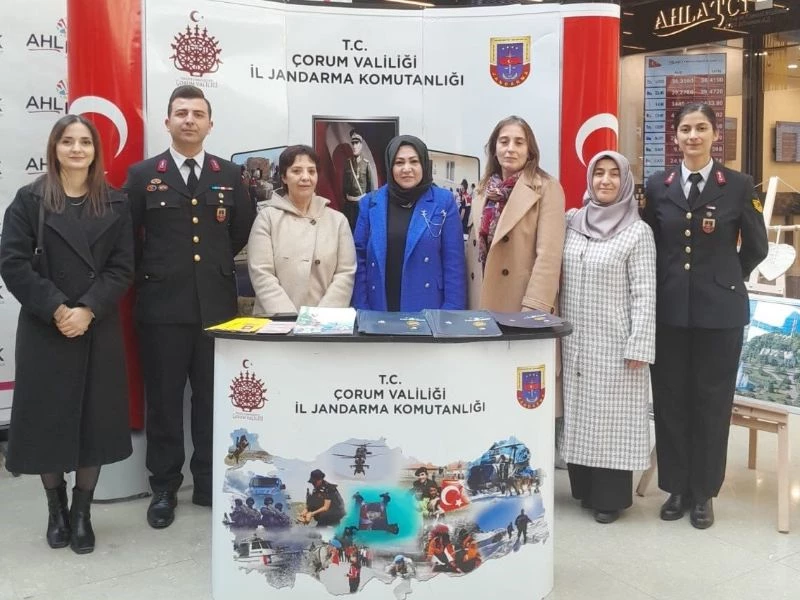 Çorum’da 8 Mart Dünya Kadınlar Günü’nde jandarma ekipleri tarafından kadına yönelik şiddetle mücadeleyle mücadeleyle ilgili vatandaşlara bilgilendirmede bulunuldu.
