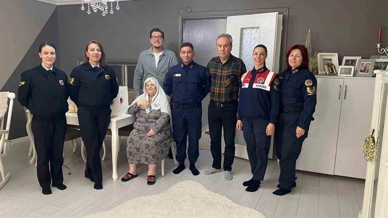 Manisa İl Jandarma Komutanlığı ve Soma İlçe Jandarma Komutanlığı ekipleri, "Rükiş Anneanne" olarak bilinen Rukiye Eryiğit’i yaşlılar haftası dolayısıyla ziyaret etti.