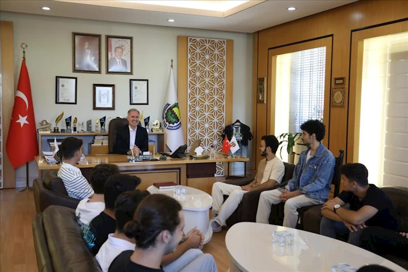 İnegöl Belediyesi’nin hayata geçirdiği Nöbetçi Kitaphanelerde sınavlara hazırlanarak farklı üniversitelere yerleşen öğrenciler, Belediye Başkanı Alper Taban’ı makamında ziyaret etti.