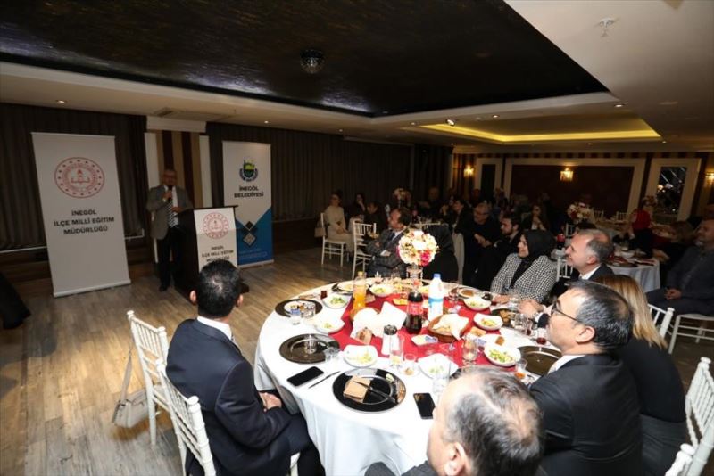 24 Kasım Öğretmenler Günü, İnegöl’de özel bir organizasyonla kutlandı. İnegöl Belediyesi ile İnegöl Milli Eğitim Müdürlüğü iş birliğinde 24 Kasım Öğretmenler Günü nedeniyle yemek düzenlendi. Eski İlçe Milli Eğitim Müdürleri, Eski Şube Müdürleri, emekli öğretmenler, göreve yeni başlayan öğretmenler, kıdemli öğretmenler, ücretli öğretmenler ve özel okul öğretmenlerinin katıldığı yemeğe; Kaymakam Eren Arslan, Belediye Başkanı Alper Taban, Milli Eğitim Müdürü Ali Doğru ve İlçe Emniyet Müdürü Erdoğan Baydemir de katıldı.