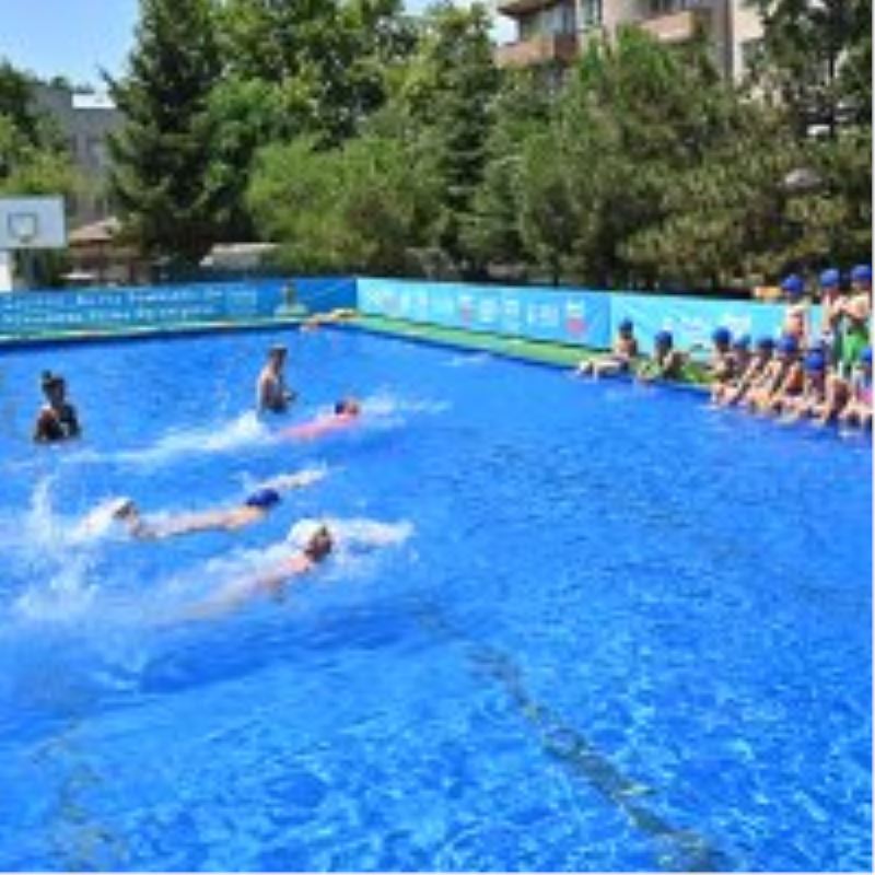 Bursa’nın sporda da marka kent olması, sporun tabana yayılarak 7’den 70’e herkesin sporla buluşması ve özellikle yeni neslin boş zamanlarını sporla iç içe geçirmesi için farklı projeleri hayata getiren Büyükşehir Belediyesi, yaz döneminde de okul bahçelerini havuzlarla renklendirdi. ‘Neşeli Havuzlar Mutlu Çocuklar’ projesi kapsamında; Osmangazi’de Lütfü Banuşoğlu İlkokulu ve Şehit Jandarma Uzman Çavuş İlyas Genel İlkokulu, Yıldırım’da Fevzi Çakmak İlköğretim Okulu ve Kestel’de Şehit Mustafa Kurt Ortaokulu bahçesine portatif yüzme havuzları kuruldu. Yarı olimpik yüzme havuzlarına yakın olarak 12x24 metre ebatlarında ve 1.20 metre derinliğindeki havuzların yanı sıra, aynı alanda çocukların yaz tatilini keyifli atmosferde geçirebilmeleri için oyun ve spor alanları oluşturuldu. 26 Ağustos’a kadar devam edecek proje kapsamında, uzman eğitmenlerle 6-13 yaş aralığındaki çocuklara ücretsiz yüzme eğitimi veriliyor.