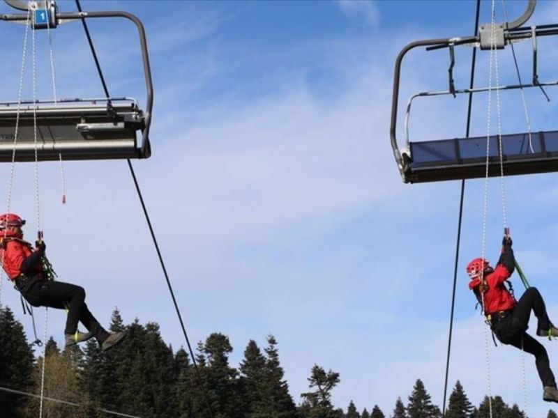 Kış turizminin önemli merkezlerinden Uludağ'daki pistlerde bulunan telesiyejlerde tatbikat gerçekleştirildi.