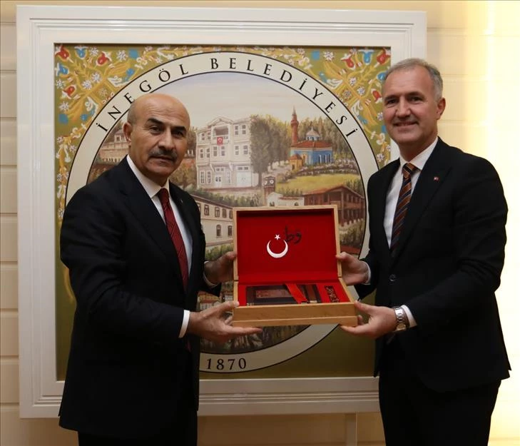 Başkanlık makamında gerçekleşen ziyarette, Belediye Başkanı Alper Taban Vali Mahmut Demirtaş’a hem şehir hem de İnegöl Belediyesi’nin çalışmaları ve projelerle ilgili bilgiler verdi. Ziyaret sonunda Başkan Taban, Vali Demirtaş’a hediye takdimi de gerçekleştirdi.