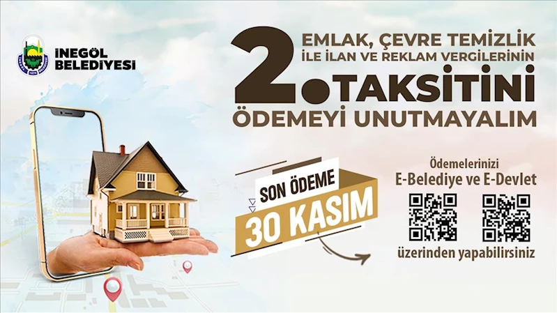 İnegöl Belediyesi, 2023 yılı Emlak, Çevre Temizlik ve İlan Reklam vergilerinin ikinci taksit ödemelerine ilişkin bir açıklama yayınladı. Açıklamada, Belediyenin önemli gelir kaynaklarından olan; emlak vergisi, çevre temizlik vergisi ve ilan reklam vergisi 2. taksitlerinin ödeme süresinin 30 Kasım Perşembe günü sona ereceği belirtilerek mükelleflerin bu konuda gerekli hassasiyeti göstermeleri istendi.
