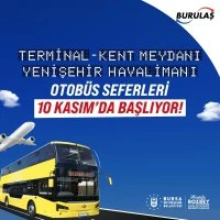 BURSA – Bursa Büyükşehir Belediyesi, uçuşların yeniden başladığı Yenişehir Havalimanı'na otobüs seferlerini, Kent Meydanı’nın ardından 10 Kasım Pazar gününden itibaren Bursa Şehirlerarası Otobüs Terminali’nden de başlatıyor.