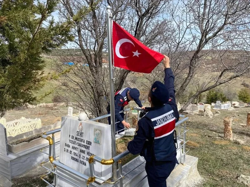 Yozgat İl Jandarma Komutanlığı’na bağlı Saraykent İlçe Jandarma Komutanlığı ekipleri, 18 Mart Şehitleri Anma Günü kapsamında şehit kabristanlarında temizlik ve bayrak yenileme çalışmaları gerçekleştirerek vatan uğruna can veren kahramanların aziz hatırasına sahip çıktı.